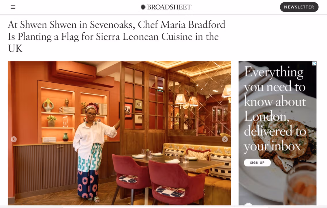 When chef and cookbook author Maria Bradford opened Shwen Shwen in June in Sevenoaks, Kent, she planted a flag for Sierra Leonean cuisine in the UK – in a market town where cassava, plantain, shito and palm oil aren’t common ingredients.