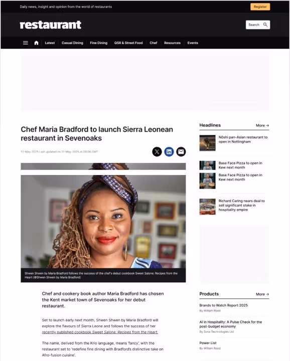 Chef Maria Bradford to launch Sierra Leonean restaurant in Sevenoaks