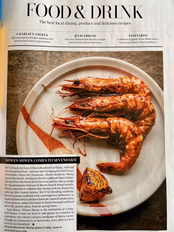 Says Maria: “Shwen Shwen is the realisation of a long-held dream for me that takes guests on a journey to experience the vibrant culinary landscape of Sierra Leone. Though my restaurant is in Sevenoaks, every dish is a love letter to my heritage.”