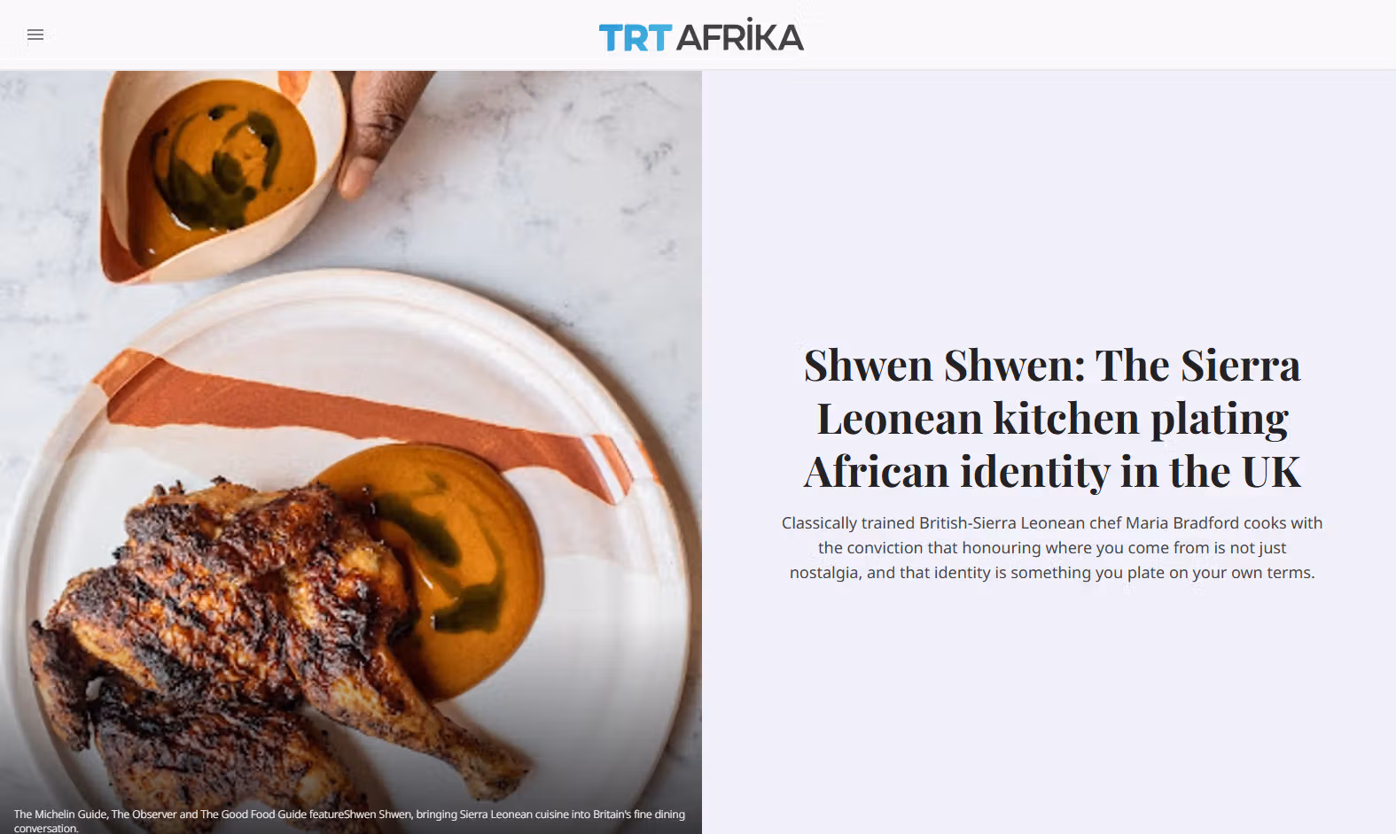 Classically trained British-Sierra Leonean chef Maria Bradford cooks with the conviction that honouring where you come from is not just nostalgia, and that identity is something you plate on your own terms.